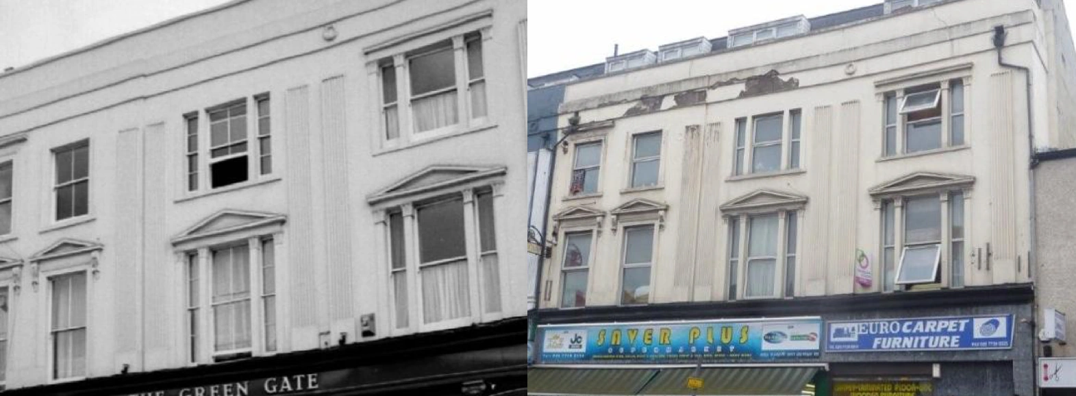 The Green Gate was situated at 230 Bethnal Green Road. This long-established pub was present before 1810; indeed its name suggests it was here when Bethnal Green had a rather more rural appearance than it does today. In the twentieth century, it was tied to the Taylor Walker Brewery.